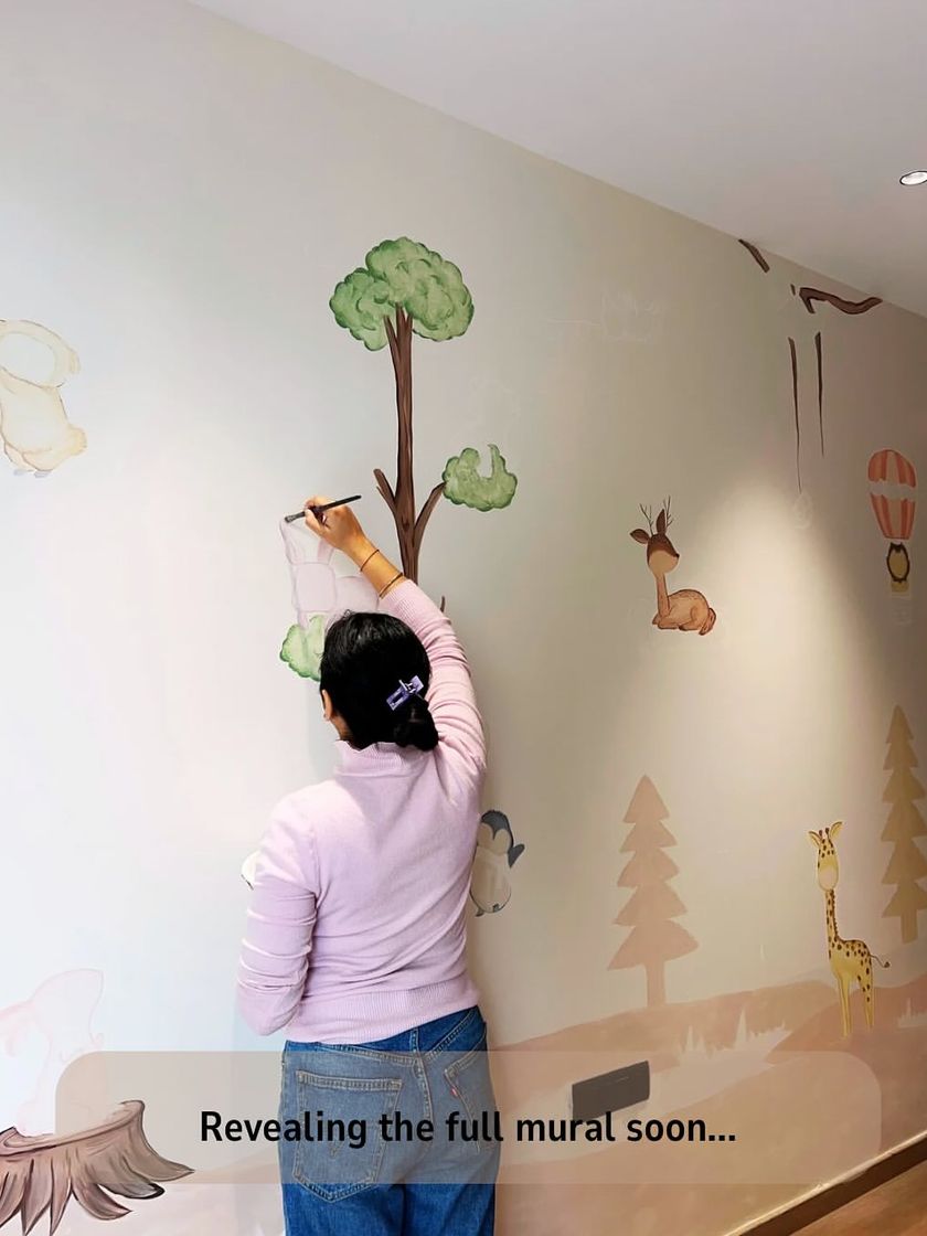 I design and paint gentle, dreamy murals for children's rooms and nurseries. Using soft color palettes and themes like baby animals and woodland scenes, I create a calm and magical space for your little one to grow in.