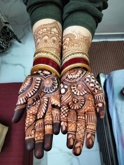 I’m based in Delhi, but if you need a destination bridal mehndi artist, I travel anywhere. Got a big family or a lot of guests? My team can handle it - just let me know what you need.