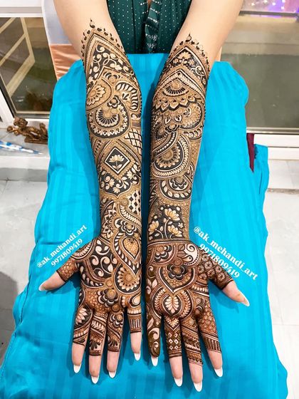 - Hands: Full intricate work extending up to the elbows on both front and back.