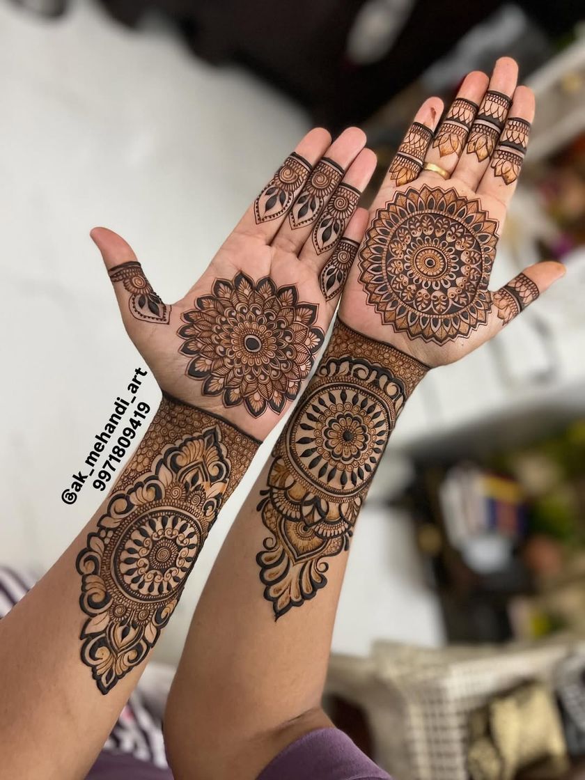 My specialty is creating breathtakingly detailed mehndi for brides and engagements. This collection showcases full-coverage designs for hands, arms, and feet, featuring traditional Indian motifs, dense filler work, and personalized elements for your special day.