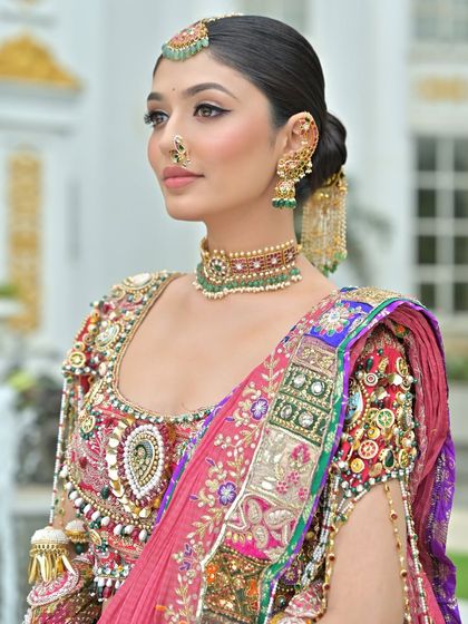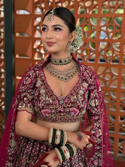 For my North Indian brides, I create looks that are a perfect blend of tradition and modern glamour. Whether it's a classic vision-in-red lehenga or a contemporary pastel outfit, the focus is on a dewy, glowing base and beautifully defined eyes. I work to ensure the makeup, hair, and styling all come together to make you feel like a queen on your wedding day.