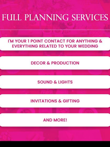 Here you can find a clear breakdown of the bespoke, full-service planning I offer, from venue management to entertainment. This section also highlights my collaborations, client testimonials, and my passion project, the 'Here Comes The Bride' bridal retreat.