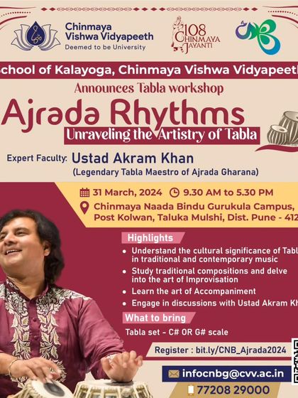 I teach Ajrada Gharana tabla in group workshops and masterclasses, focusing on traditional techniques, history, improvisation, and legacy compositions for all levels.