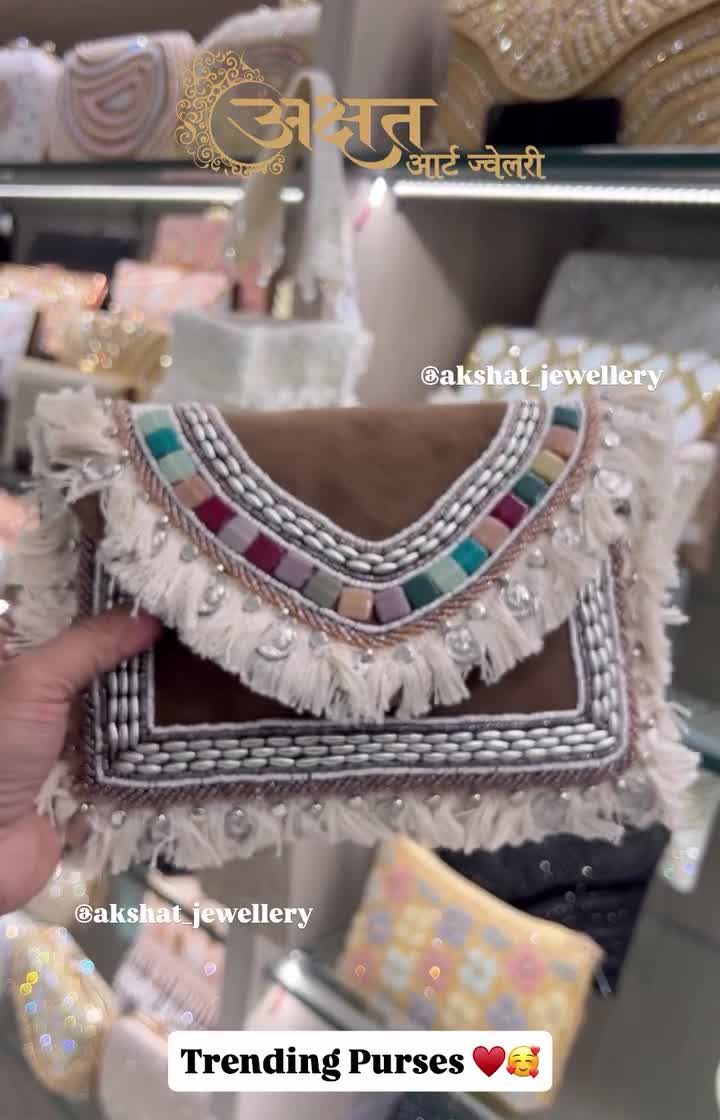 My collection includes everything from statement potli bags in velvet to embellished party clutches with beads and sequins. You'll find unique designs with fringe, floral work, and more, perfect for making an entrance at any wedding or festive event.