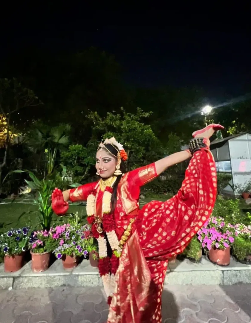 This is where the foundation is built. We focus on discipline and technique in a nurturing environment, offering both online and in-studio classes in Noida. From yoga and flexibility exercises to mastering basic adavus and sacred rituals like the Ghungroo Puja, this is where dedication turns into dance.