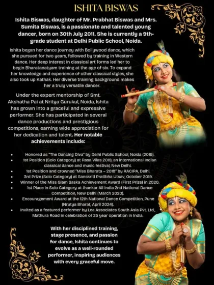 I am incredibly proud of what my students achieve, both on and off the stage. This is a celebration of their hard work, from winning national competitions and getting into top colleges to completing their Arangetram, the ultimate milestone in a dancer's journey.