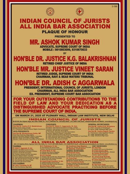 Recognized for Excellence - Awards from Indian Council of Jurists and All India Bar Association for my work.
