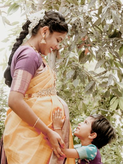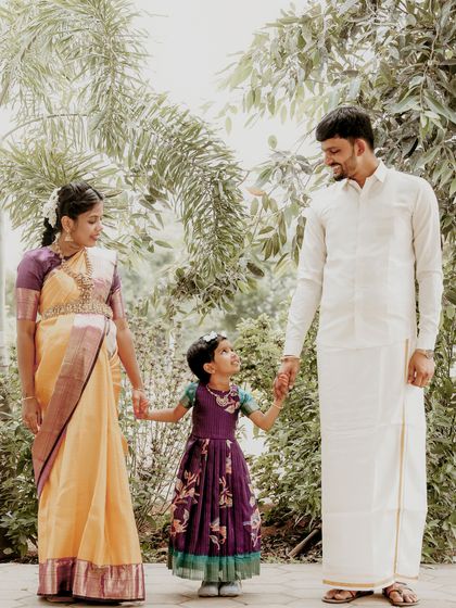- Most times, parents and siblings sneak into the frame. Love that! Family portrait sessions are always welcome, even if you all show up in your comfy pyjamas or matching veshtis (dhotis).