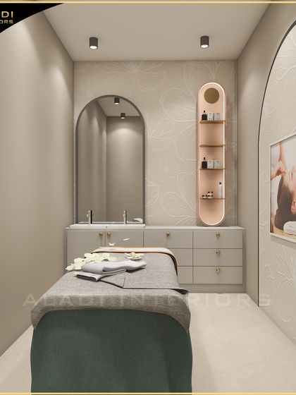 I design serene environments for spas and salons that promote relaxation and luxury. The focus is on creating a tranquil ambiance using soft color palettes, textured walls, and ambient lighting, complemented by custom shelving and elegant vanities.