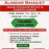 We take special pride in catering for community and religious functions, including authentic Bohra thaal jaman. We offer special packages for Imam Hussain Niyaz at our Alamdar Banquets hall, inclusive of all service charges.