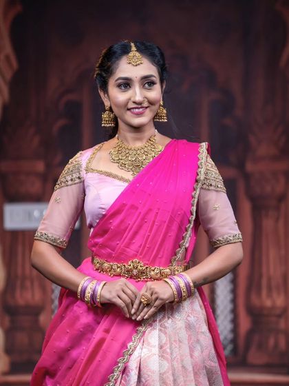 Our jewellery is the perfect companion for the youthful and vibrant half saree or langa voni. We offer a variety of matt gold and stone-studded sets that are designed to complement these traditional outfits, making them ideal for pre-wedding events, puberty ceremonies, and festive occasions.