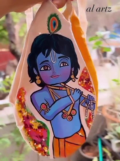 This is where my art connects with my soul, often inspired by my devotion to Krishna. I create sacred pieces like hand-painted dupattas, curtains for your home, and personalized Japa Mala bags.