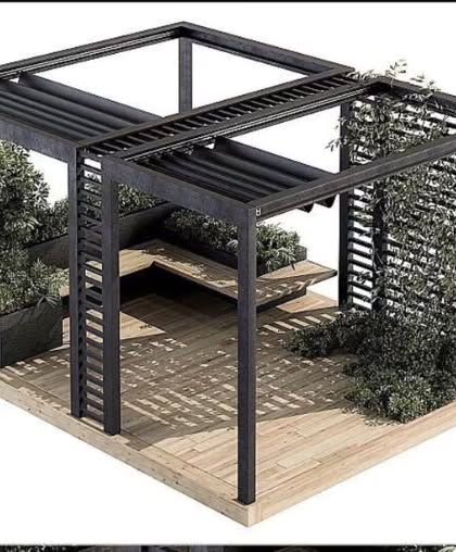 I design and build custom pergolas that transform your terrace into a stylish outdoor room. From simple sun shades to elaborate lounges with wooden-finish slats and integrated lighting, every structure is built with a strong mild steel (MS) frame to match your vision.