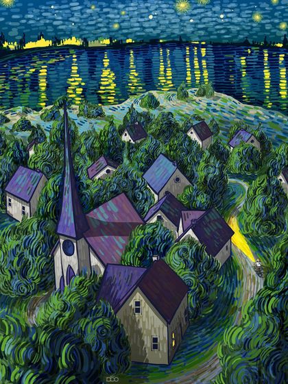 - Post-impressionist digital art blending Van Gogh's influence with modern techniques