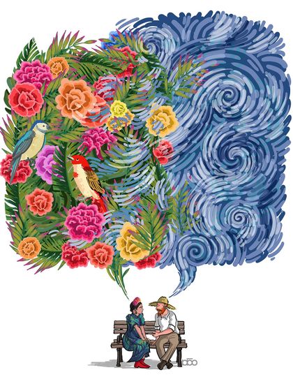 Conversations with Art Legends - I imagine scenes like Van Gogh chatting with Frida or Tintin, blending their emotions into today’s world.