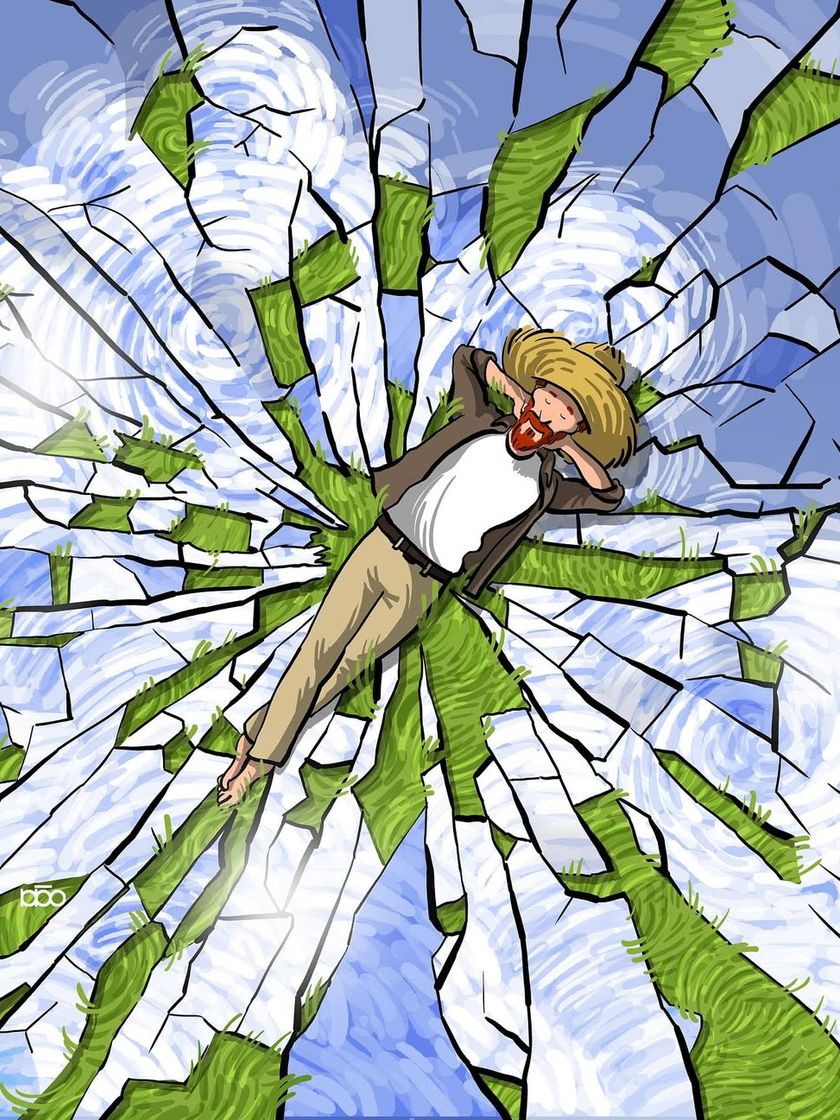 This collection forms the narrative core of my work, presented as imaginary letters from Vincent to his brother Theo. Each digital illustration places him in a contemporary setting, using his perspective to comment on modern phenomena like social media, commercialism, and the timeless search for human connection.