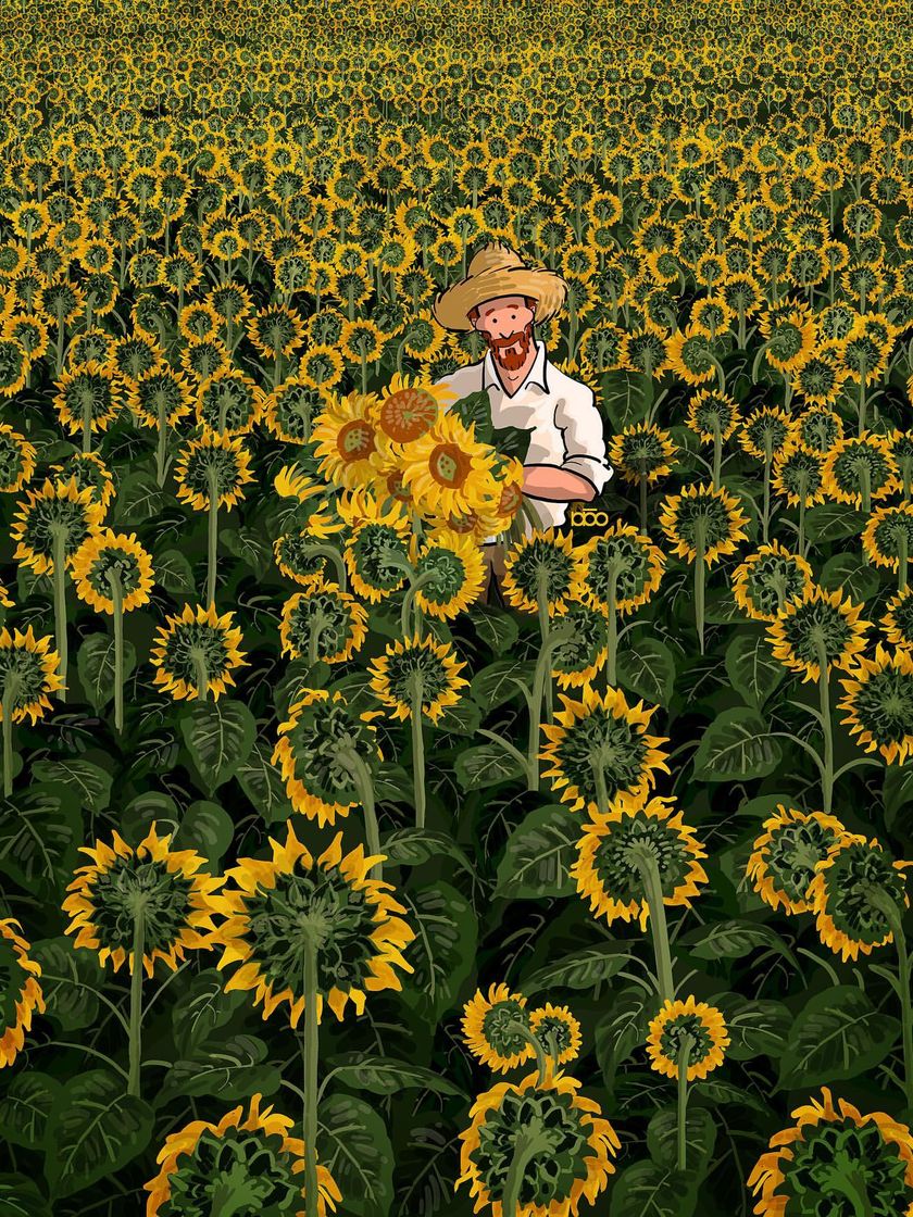 Sunflowers and wheatfields were Vincent's symbols of life, nature, and hope, often painted with a restless energy. I use these powerful motifs in my digital art to explore themes of perseverance, the struggle for recognition, and the enduring beauty of the natural world against a backdrop of modern challenges.
