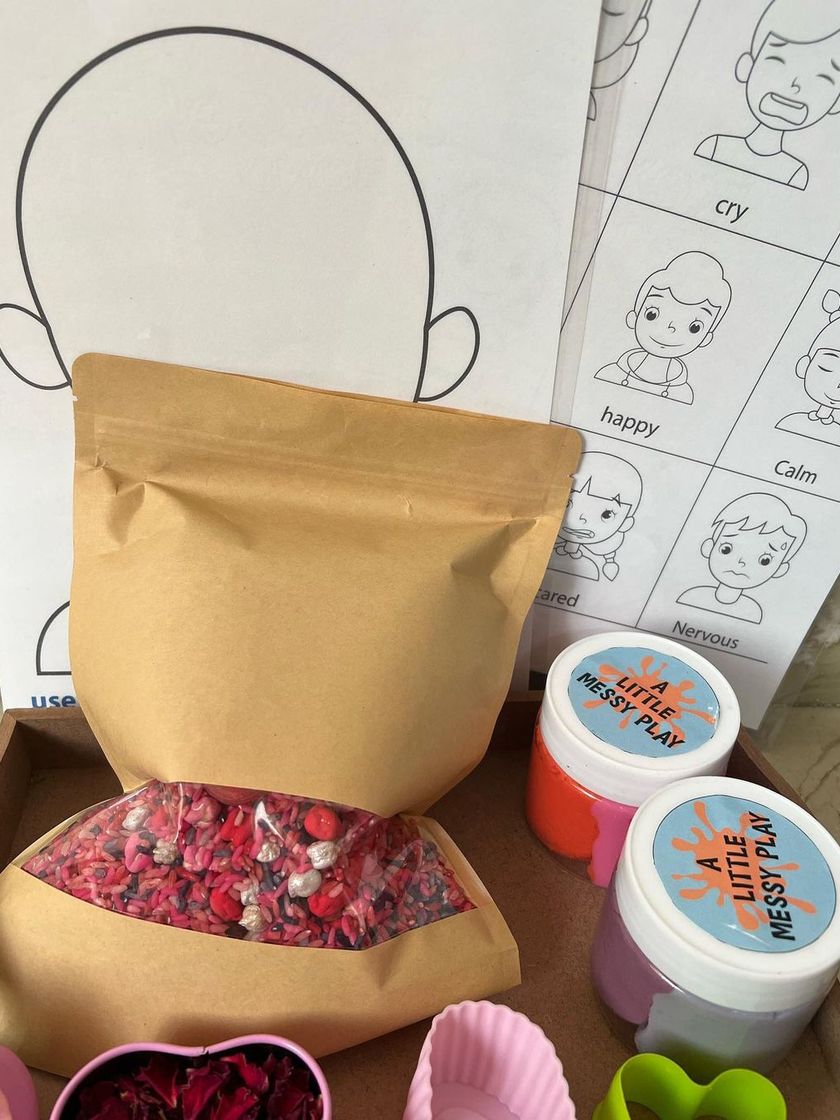 We create limited-edition, handmade sensory kits for special occasions and themes. Each kit includes non-toxic, taste-safe materials like colored rice fillers and playdough, along with activity guides to inspire creative play at home.