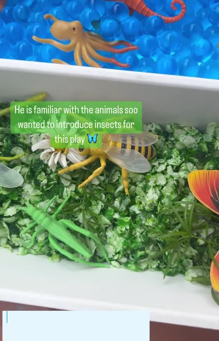 See how we use simple, safe materials to create immersive worlds for pretend play and learning. Our sensory bins feature various textures like colored rice, sand, and mud to help children explore concepts like animal habitats and storybook themes.