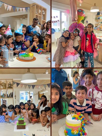This is the first impression of our studio. This collection is curated to instantly show the joy, community, and variety of creative experiences we offer for everyone, from kids' parties to relaxed adult workshops.
