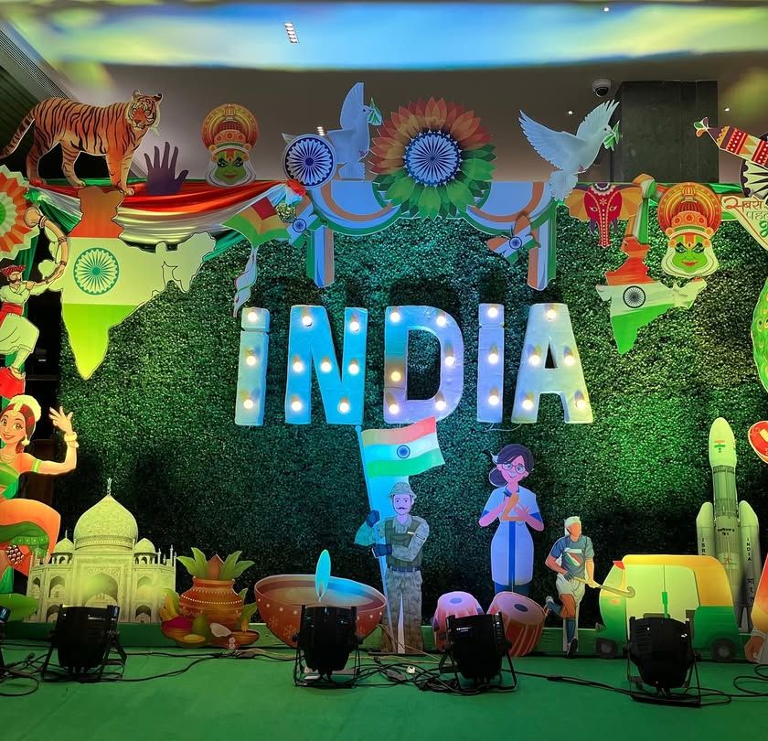 I provide full-scale patriotic decorations for Republic Day and Independence Day celebrations. From tri-color fabric canopies and balloon arches to massive flower walls and themed stages, I can create a proud and festive atmosphere for offices, societies, and public events.