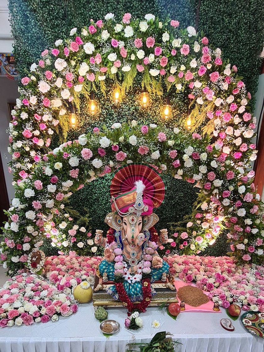 Ganpati decoration is my specialty, and I love creating magnificent settings for Bappa. This collection features my most elaborate and traditional flower-heavy designs, from dense floral walls to intricate archways, perfect for making a grand statement during Ganesh Chaturthi.