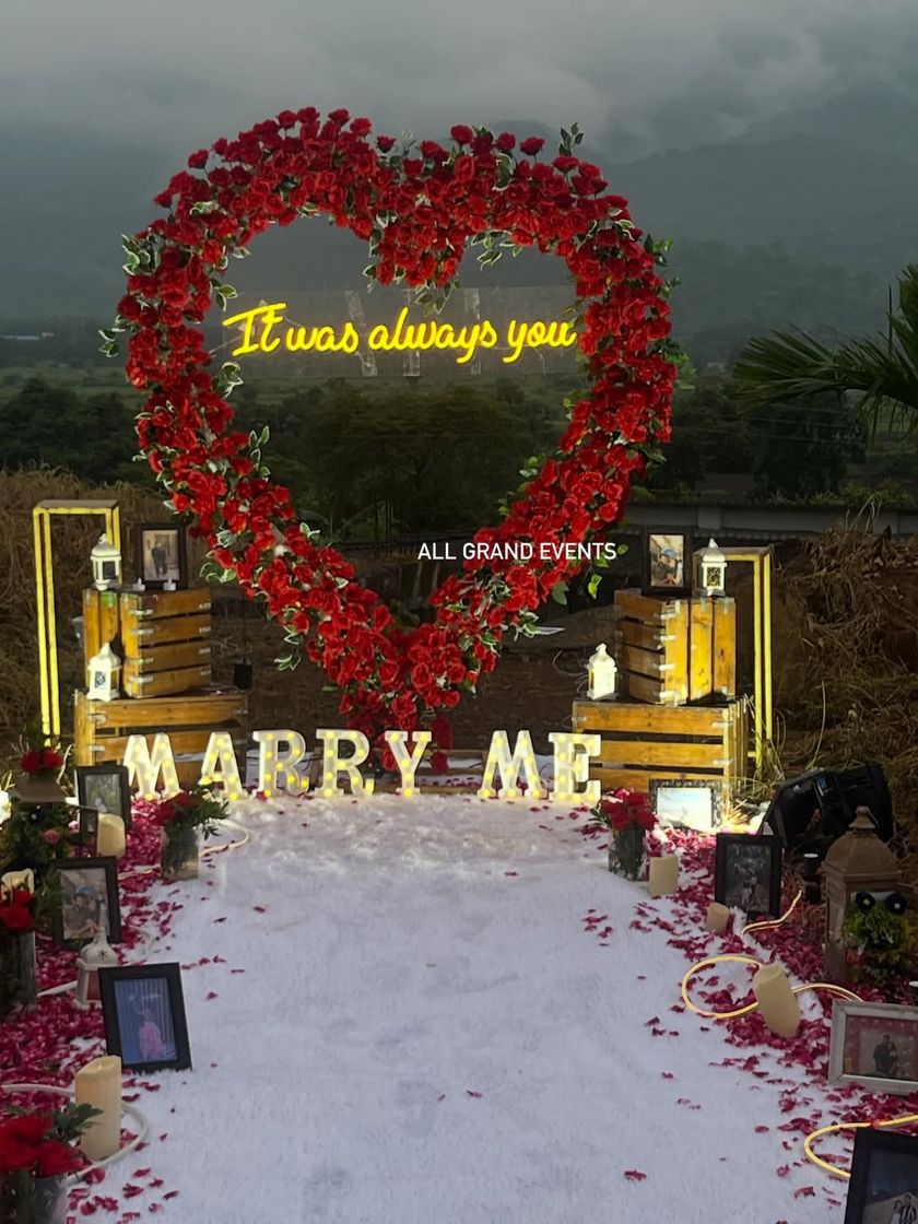 We create unforgettable, filmi-style proposal moments that are designed to get a 'yes'. Whether it's a dramatic outdoor setup with a rose arch and fireworks or a romantic private picnic on a Mumbai beach, we handle every detail.