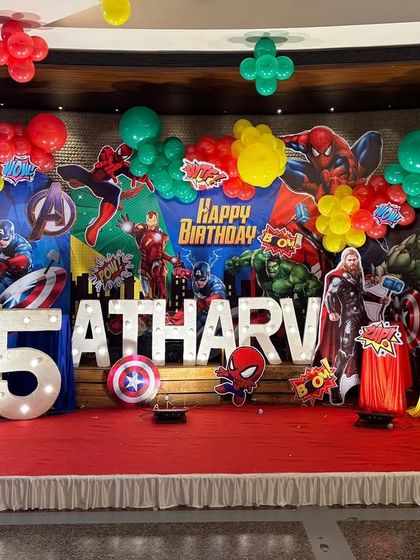 All Kinds of Event Decoration & Services - Birthday party theme decoration, Ganpati mandap decoration, Haldi, Mehendi, romantic proposal setup, baby welcome, plus photography and food.