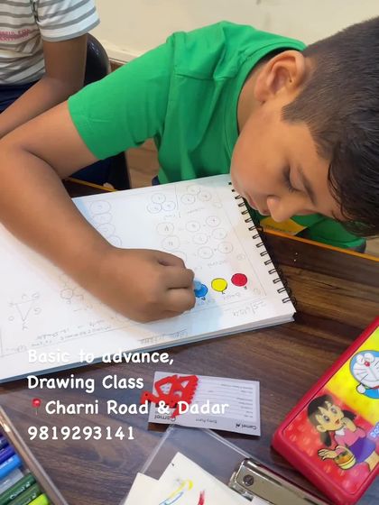 Our 5-month course covers over 30 art topics, from the absolute basics to more advanced techniques. We focus on building a strong foundation in drawing and coloring, and also offer specialized workshops like Mandala art during summer camps.
