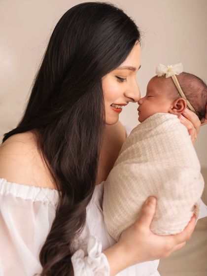 My newborn sessions are calm, gentle, and focused on your baby's delicate features. I use soft wraps, cozy props, and natural light to create timeless portraits, and always invite parents to join for those precious first family moments.