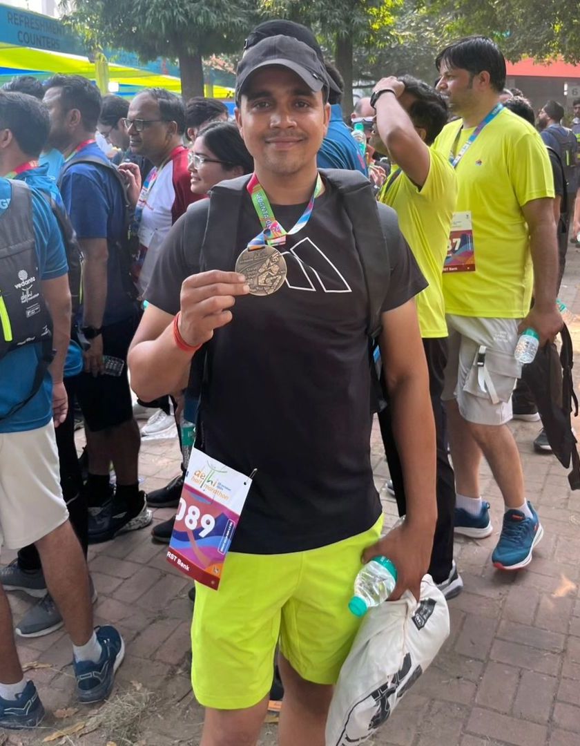 As a national level athlete, I don't just coach, I live the grind. Here are some moments from my participation in the Vedanta Delhi Half Marathon, a testament to the discipline and dedication I bring to my own training and yours.