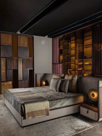 I approach bedrooms as holistic environments, often integrating the wardrobe as a key architectural element. My designs range from glass wardrobes that act as partitions to bespoke walk-in closets that merge seamlessly with the sleeping area for a spacious, unified feel.