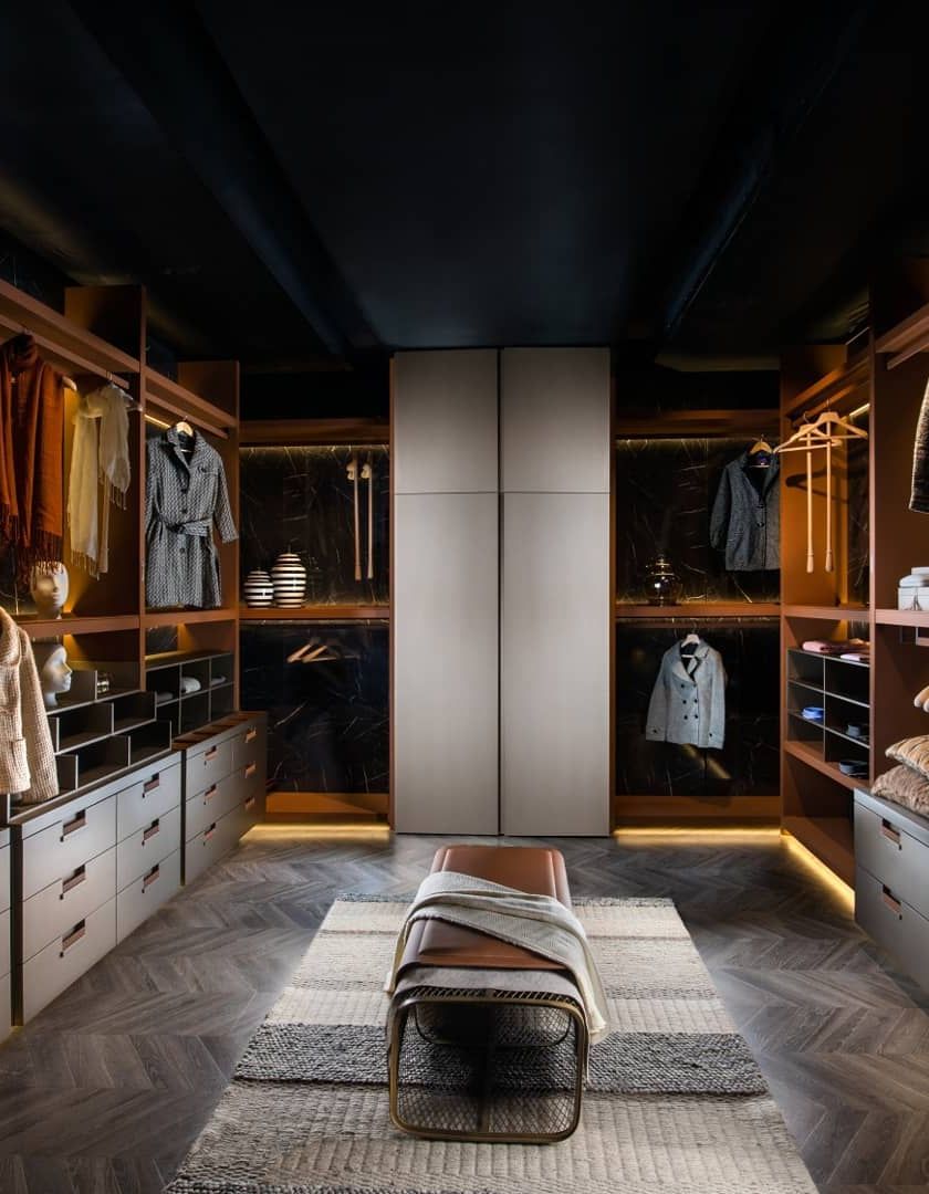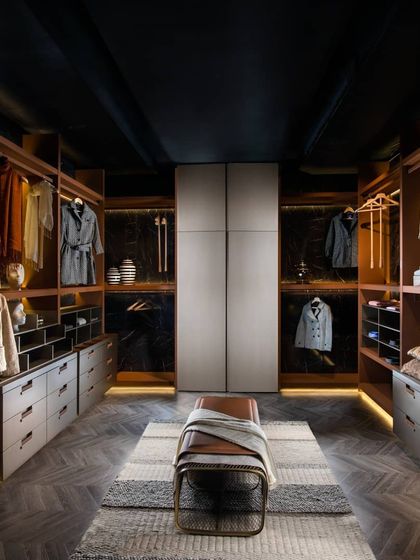 I see a wardrobe not as mere storage, but as a personal dressing sanctuary. My designs focus on creating complete environments with custom organization, comfortable seating, and premium materials like rich veneers and supple leathers to elevate your daily routine.