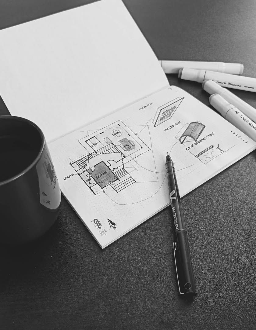 Architecture is a collaborative journey of turning ideas into reality. Here is a glimpse into my process and my team, from initial sketches and client presentations to hands-on work at the construction site, showing the dedication behind every project.