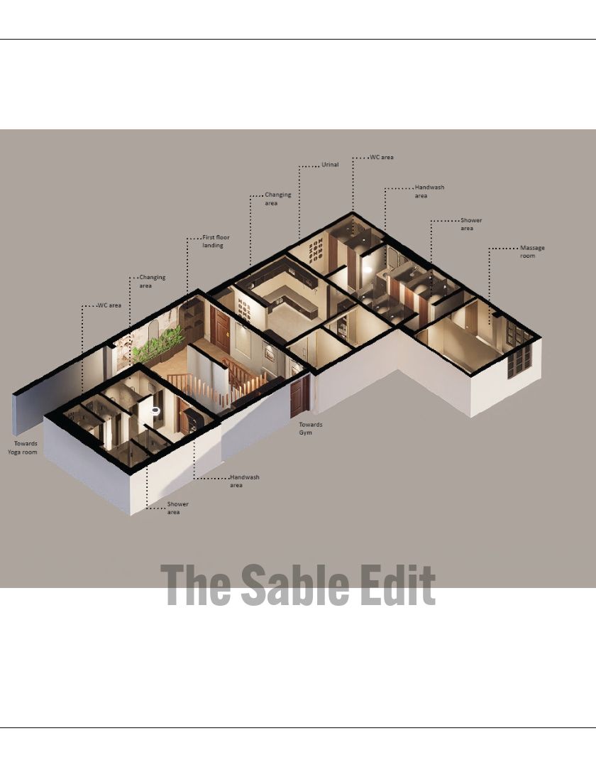 I redesigned the gents' washroom at the historic Bangalore Club to be a complete wellness destination. The project involved creating distinct zones for changing, washing, and relaxation, integrating modern amenities like steam and sauna rooms while preserving the club's colonial character through a palette of wood, stone, and classic tilework.