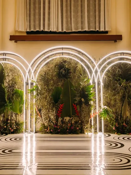 I transform spaces for your evening celebrations with custom lighting, stylish stage designs, and unique dance floors. Whether it's a grand Sangeet or an intimate reception, I focus on creating a magical atmosphere with elements like fairy lights, chandeliers, and neon signs.