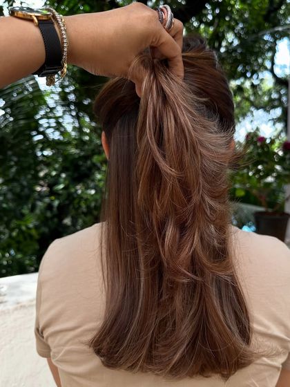 I'm known for my cascading layers and soft, face-framing cuts that create movement and volume without the "helmet hair" look. Every haircut is finished with a professional blowout, styled into soft waves or a sleek, straight look to make sure you walk out feeling amazing.