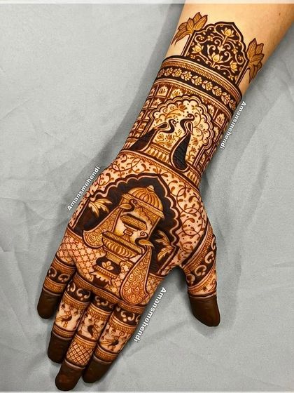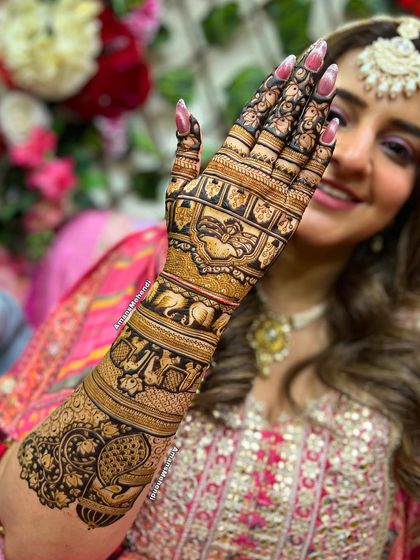 I design custom bridal mehndi with portraits, traditional motifs, and my own natural henna, and I travel anywhere you need.