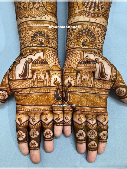 Jai Shree Ram. I’m Aman, mehendi artist from Mumbai, living in Mulund but my cones travel more than I do. For me, mehendi isn’t just kaam (work) - it’s bhakti (devotion). Shrinathji sits in my heart, guiding every stroke. 7 years, 2000+ brides, and still every mehendi feels new. I love making dreams come alive on hands, whether it’s a simple flower or a Shiv-Parvati portrait. Trust my process, and the colour will speak.