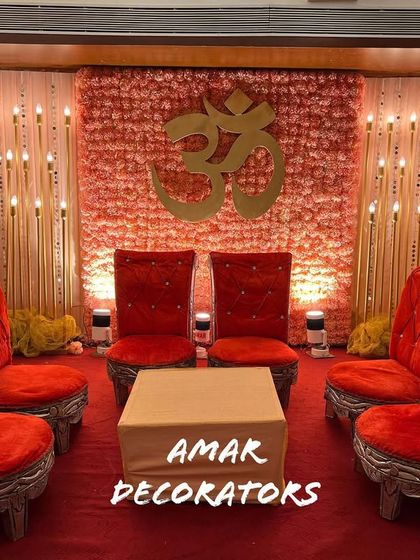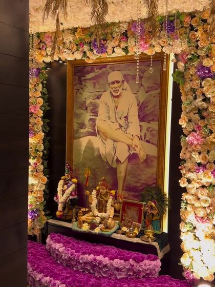 Welcoming Bappa home is a special moment, and I create the perfect setting for him. My designs range from lush, dense floral backdrops in various color themes like purple, blue, and red to modern neon arches and classic marigold setups.