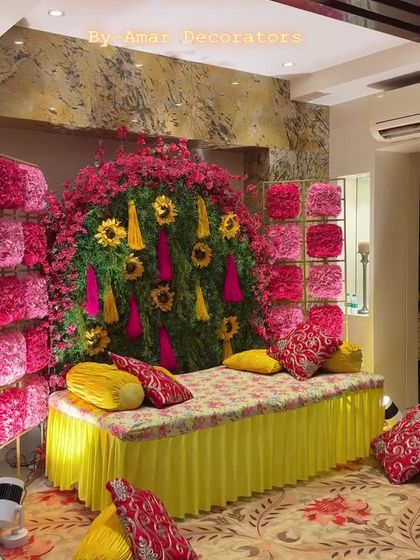 Couples seeking traditional yet contemporary pre-wedding celebration decor, especially those planning grand Mehendi and Sangeet functions with a focus on creating Instagram-worthy moments.