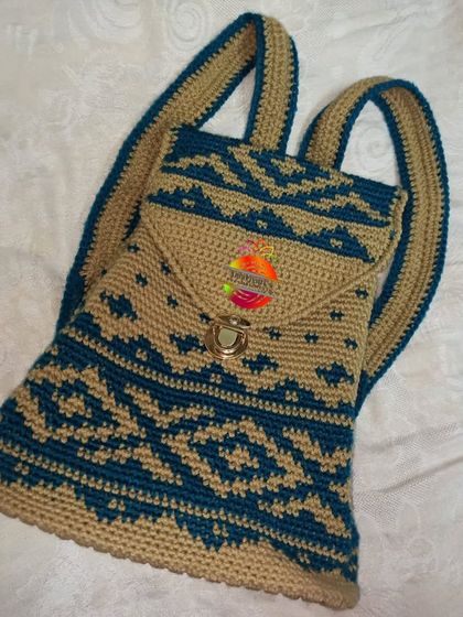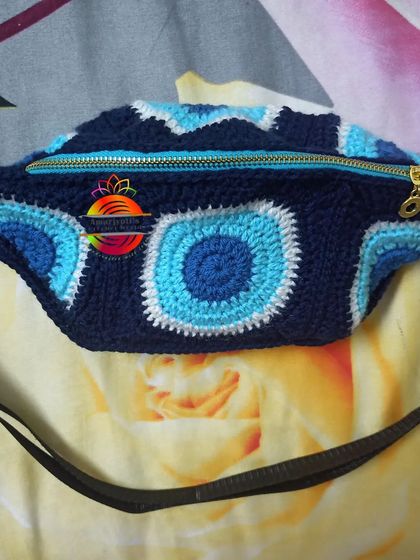 - Bags for every mood - from sturdy t-shirt yarn handbags with chain straps to those granny square bags with peacock feather designs. My tapestry backpacks are a hit in college crowds, and the crochet pouches and slings (the Evil Eye one is everyone’s fave) are perfect for day-to-day stuff.