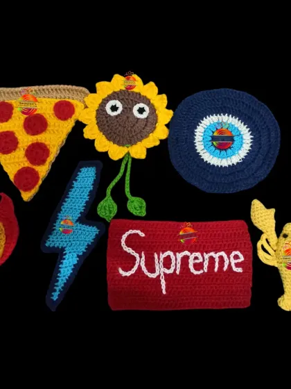 - Other fun stuff too: crochet bucket hats (kids love my Angry Birds theme, and I love making plush velvet ones), small custom crochet keychains, car hangings like sunflower bouquets, and cute patches (pizza, lightning bolt, lobster... you name it).