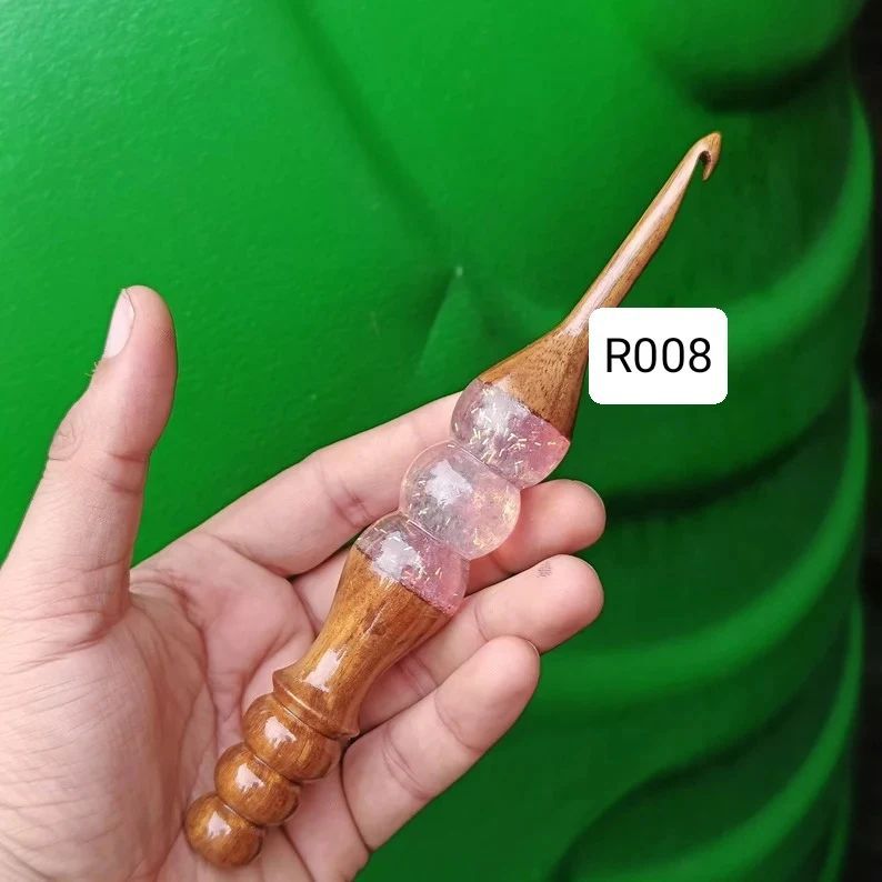 These are the hooks I use every day, designed for comfort and beauty. I offer classic, polished wooden hooks for a traditional feel, and my special hybrid hooks that have a smooth wood shaft and an ergonomic resin handle to reduce hand strain.