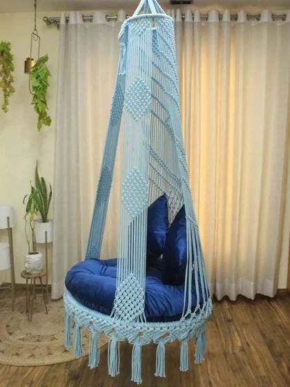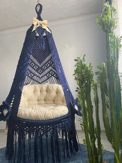 We specialize in handcrafted macrame swings, offering single-seater, dual-seater, sofa-style, and baby swing varieties. Each piece showcases intricate knotting patterns and bohemian designs, suitable for both indoor and outdoor spaces.