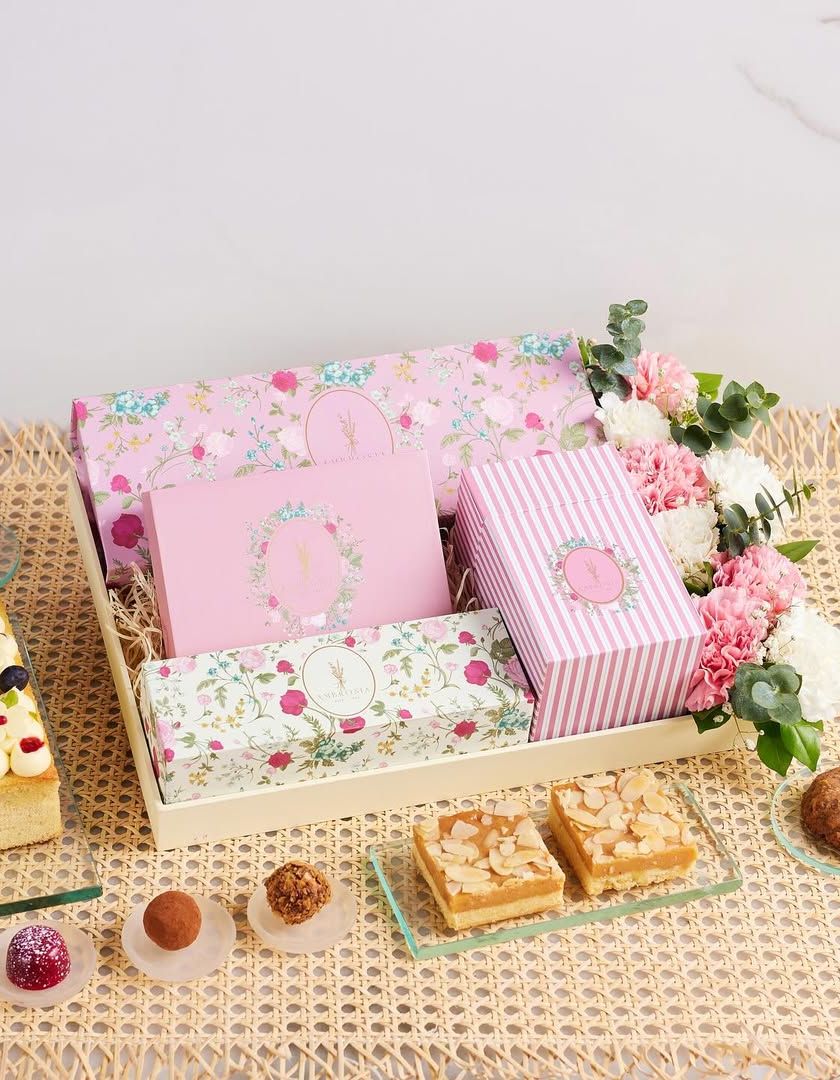 A closer look at the heart of our hampers. This collection features our most loved, handcrafted desserts, including fudgy brownies, Belgian truffles, modern mithai tartlets, English toffee, and gourmet cookies, all available as part of our eggless range upon request.