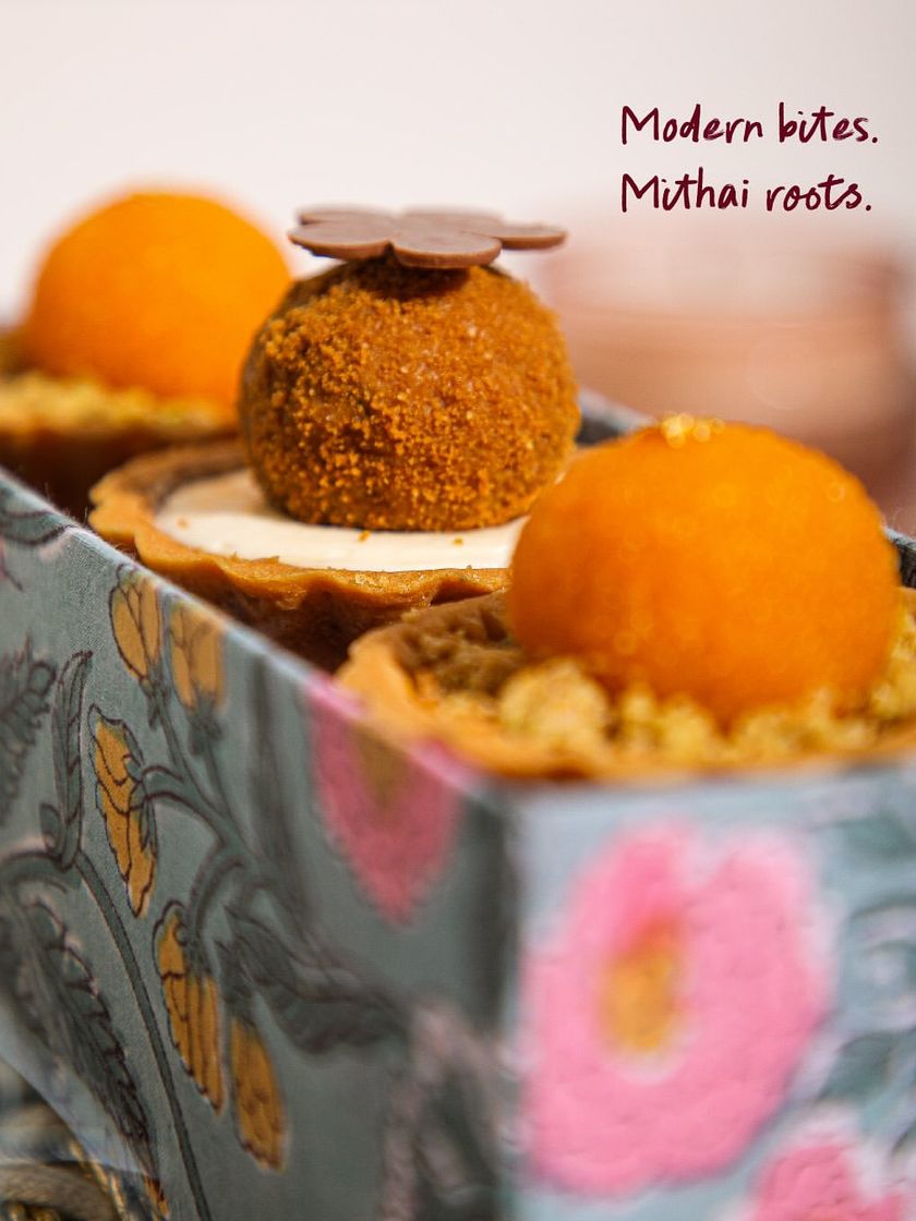 We create artisanal hampers that blend traditional flavors with a modern twist for festivals like Diwali, Rakhi, and Christmas. Each box is a story, featuring our signature mithai tartlets, fudgy brownies, and more, all beautifully packaged to celebrate the season.