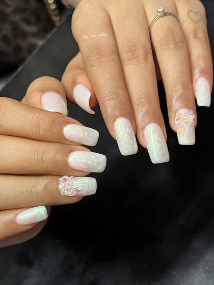 Get the perfect nails for any celebration, from Diwali lights and Holi colors to your special wedding day. I create custom sets for festivals like Navratri and Rakhi, and elegant bridal nails with details like pearl chrome and 3D flowers to match your henna.