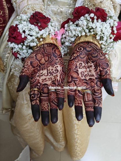 I'm a self-taught artist creating trendy bridal and floral mehendi. I specialize in personalizing your design with names, dates, or phrases like 'Qubool Hai' to make it unique.