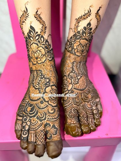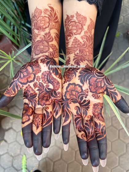 My Style - I’m into Pakistani bridal mehendi and floral styles, with rich full-hand designs and dark henna stain.